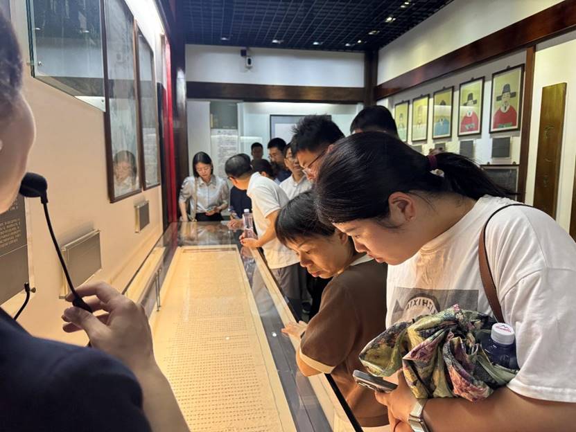 走进古朴庄重的杨升庵博物馆,厚重的历史气息扑面而来。党员干部们在讲解员的引导下,依次参观了杨升庵生平事迹展、学术成就展、家风家训展等多个展区。泛黄的古籍、斑驳的手稿、珍贵的文献资料,生动再现了杨升庵这位明代文化大家波澜壮阔的一生,从遭受贬谪仍潜心治学,到始终坚守清廉本色,每一个历史片段都深深触动着在场党员干部的心灵。