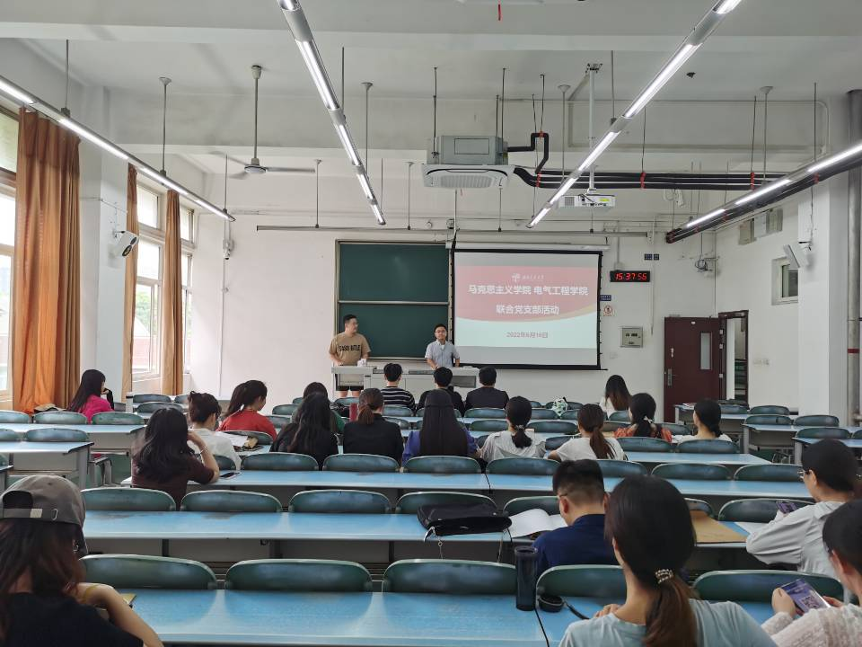 为深入贯彻落实党的十九届六中全会精神,积极引导员工党员自觉做习近平新时代中国特色社会主义思想的坚定信仰者和忠实实践者,进一步加强员工党支部之间交流互动,增进相互了解,密切相互联系,2022年6月16日下午,2020级硕士研究生党支部联合电气工程公司电气硕士21-12班党支部在X2330共同组织开展了党支部书记讲党课活动。会议由党支部书记罗田、严一舟同志主持,两个支部全体党员参加。