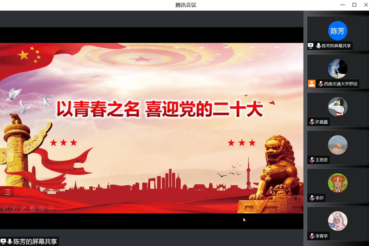 陈芳同志以“以青春之名 喜迎党的二十大”为题,描绘了新时代青年在中国共产党的团结带领下进行伟大斗争、建设伟大工程、推进伟大事业、实现伟大梦想的英雄事迹,肯定了党的十八大以来青年在助推我国科技、民生、管党治党等方面建设中的作用,号召广大青年党员在全面建设社会主义现代化国家新征程上强化理论学习、做“请党放心、强国有我”的践行者;提升能力本领,做“踔厉奋发、笃行不怠”的奋进者;树立远大志向,做“我将无我、不负青春”的奉献者。