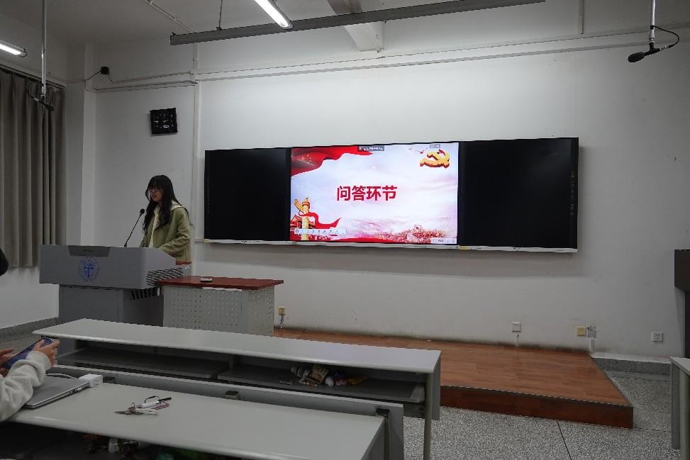 接着进入政治问答环节,由员工会组织部部长李雪儿主持,活动以“全国两会为主题”竞答拉开序幕,设置必答、抢答两大环节,题目涵盖“中国式现代化”“新质生产力”“全过程人民民主”等核心概念。同学们踊跃参与,热情抢答,学习积极性高涨。