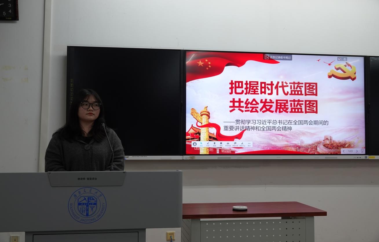随后由员工会组织部副部长何显娇组织开展以“把握时代蓝图,共绘发展蓝图”的政治学习会议。结合两会精神,呼吁青年师生勇担时代使命。她引用两会青年代表的先进事迹,如扎根乡村的创业青年、科技前沿的攻坚团队,强调青年应“汲取榜样力量,提升政治素养与专业能力”。何显娇指出,需以两会精神为指引,将个人奋斗融入国家发展大局,在科技创新、民生改善、改革攻坚中贡献智慧与力量。”与会师生纷纷表示,将立足岗位、知行合一,为推动中国式现代化建设注入青春动能。