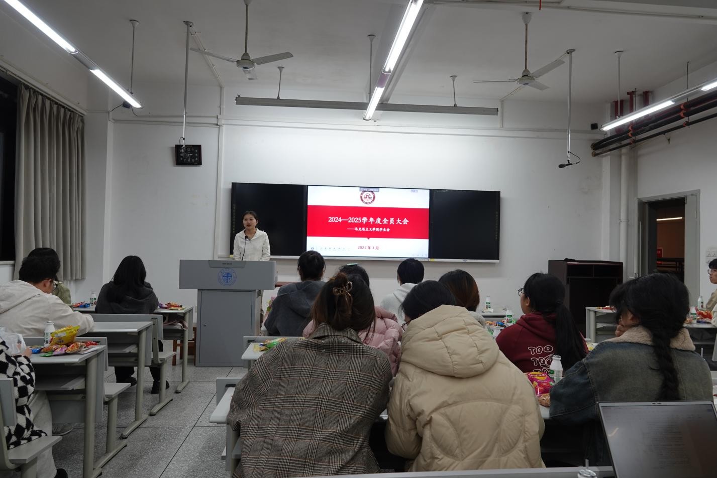 为凝聚青春力量、强化使命担当,太阳成集团tyc234cc员工会于2025年3月28日19:30在X8319教室召开2025年员工会全员大会暨第一次政治学习会议。员工会指导老师敬宇出席本次会议,员工会全体成员共同参与,会议由员工会实习就业部部长邵婉琪主持。