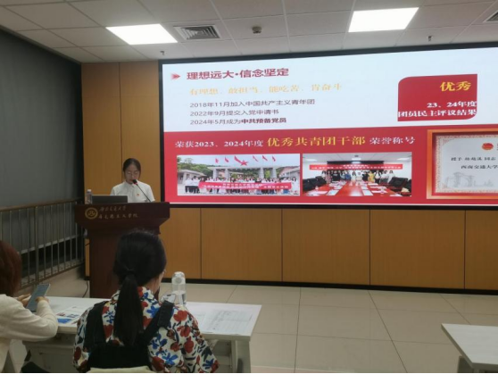 5月21日,第二场讲座邀请到了数学公司的杨越溪担任主讲人。她分享了自己从青联会活动部干事到会长团成员的成长历程,强调员工干部要以自我提升为一切工作的基础,只有自身具备过硬的素质和能力,才能更好地为同学服务。接着,杨越溪分享了参与竞赛的经验。她提到,自己赛后会根据活动目标,结合专业知识与未来规划为同学们答疑解惑,从而带动大家共同进步。此外,她还分享了自己的志愿服务经历,这些经历不仅为她积累了宝贵的实践经验,更让她明确了今后的工作方向,在服务他人的过程中实现自我价值的提升。