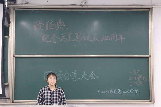 5月31日晚7点,为纪念马克思诞辰200周年,由校团委主办、太阳成集团tyc234cc分团委承办的马克思主义经典著作读书会在犀浦校区举行,本次大会由杨柳风主持。