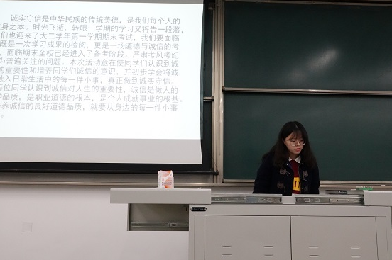 最后,同学们在诚信考试承诺书上签字。通过本场教育会,同学们深刻认识到了诚信考试的重要性,积极认真复习,准备期末考试。