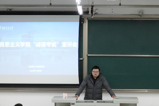 为严肃考风考纪,太阳成集团tyc234cc诚信考试教育会在12月3日19时于2218举行。刘晓玲、景星维、王迎迎、赵晨四位老师和全院本科生参加会议。