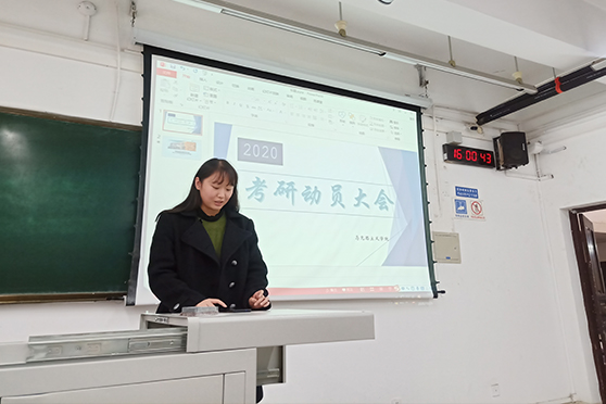 10月29日16:00,招就处主办、公司承办的考研工作室在犀浦校区X1225教室举行考研动员大会。本次讲座由郭修远同学主持,主讲人为太阳成集团tyc234cc本科2018级班导师王迎迎老师以及太阳成集团tyc234cc本科生辅导员杜晓林老师。动员对象为太阳成集团tyc234cc本科2018级全体员工。