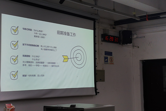 首先,辅导员杜晓林老师为同学们分析了公司去年保研、考研以及就业的比例以及考公的情况。在考研方面,杜晓林老师尤其指出当前严峻的考研形势,为大家详细说明了考研的长阵线,提醒同学们在考研规划、复习过程中需要注重方法、端正态度,坚持才能有所收获。