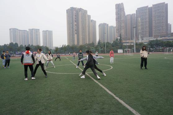 最后一个游戏是动作接龙。在这个游戏中,主持人按自己的想法随意播放音乐,同时由他指定一个人先做一个动作,第二个人在重复第一个动作后再加上自己的一个新动作,以此类推。游戏过程中也出现了五花八门的动作,没有参与比赛的同学也争相模仿,气氛十分热烈。