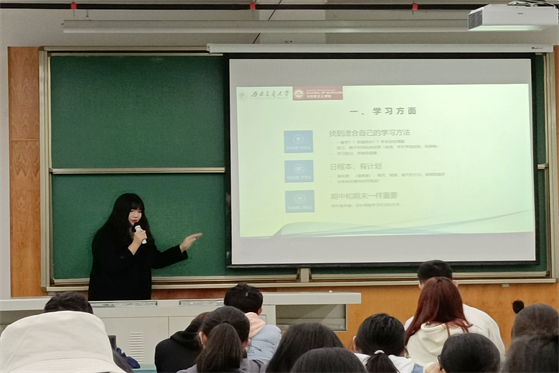 最后,龚禹竹同学侧重讲如何丰富老员工活,怎样成长为一个完整的人。她结合自身大学学习工作经历,从学习、科研、竞赛活动、员工工作、考研五个方面为同学们提供了经验和建议,并对大家表示祝福和期待。