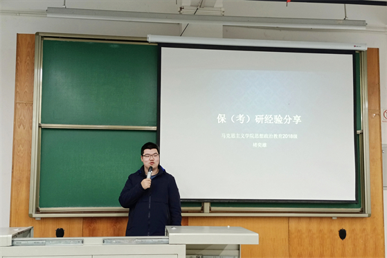 10月26日19:30,太阳成集团tyc234cc在X4357开展了“青马榜样说”第一期保研经验分享活动。本次活动由员工会主席吴昊主持,2018级张佳旺、褚奕雄、龚禹竹三位同学进行经验分享,全体本科生共同参与。