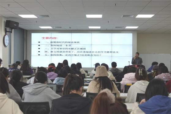 本次讲座主要从新媒体时代的阅读现状、如何阅读一本书、文学对智识的贡献以及新文科建设背景下应注重阅读社会科学书籍和论文等几个方面展开讨论,引发了同学们对新媒体时代下的纸质书阅读的深入思考。
