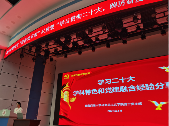 为深入学习贯彻党的二十大精神,促进各高校间、党支部间的交流,四川省研究生“样板党支部”共建暨“学习贯彻二十大,踔厉奋发新征程”主题党日活动于4月20日上午9:30在四川大学望江校区东三教演播厅举行,公司团委书记、研究生辅导员赵晨,博士党支部党员代表等参加。