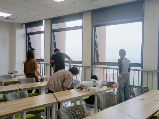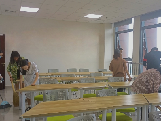 同学们热情响应、积极参与,对公司自习室和储物间等公共区域进行了细致打扫。活动过程中,同学们分工明确、相互配合。有的同学负责扫地和清理地面垃圾,有的同学负责拖地,还有一部分同学负责擦窗户、擦桌子等,用实际行动践行了“崇尚劳动,热爱劳动”的劳动精神。