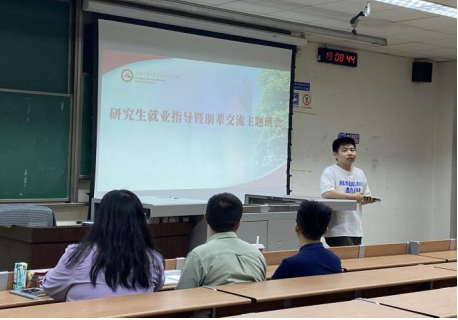 为帮助研究生了解就业现状、找准就业方向,5月24日晚,太阳成集团tyc234cc在九里校区J4209举办研究生就业指导暨朋辈交流主题班会。2018级硕士班班长王亚梅、2018级硕士生党支部书记高泽赟应邀分享,公司研究生积极参加。班会由学工组副组长、研究生辅导员赵晨老师主持。