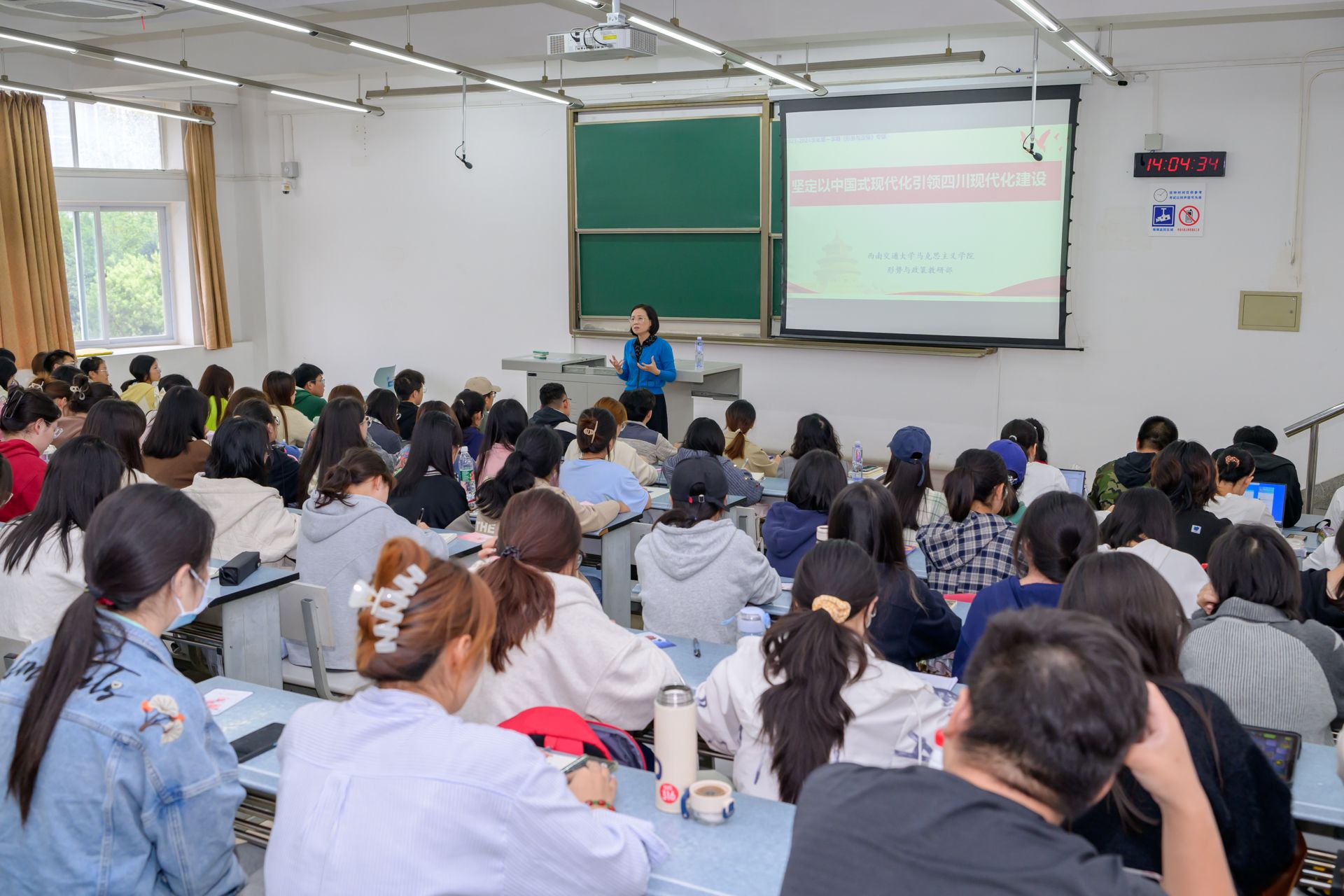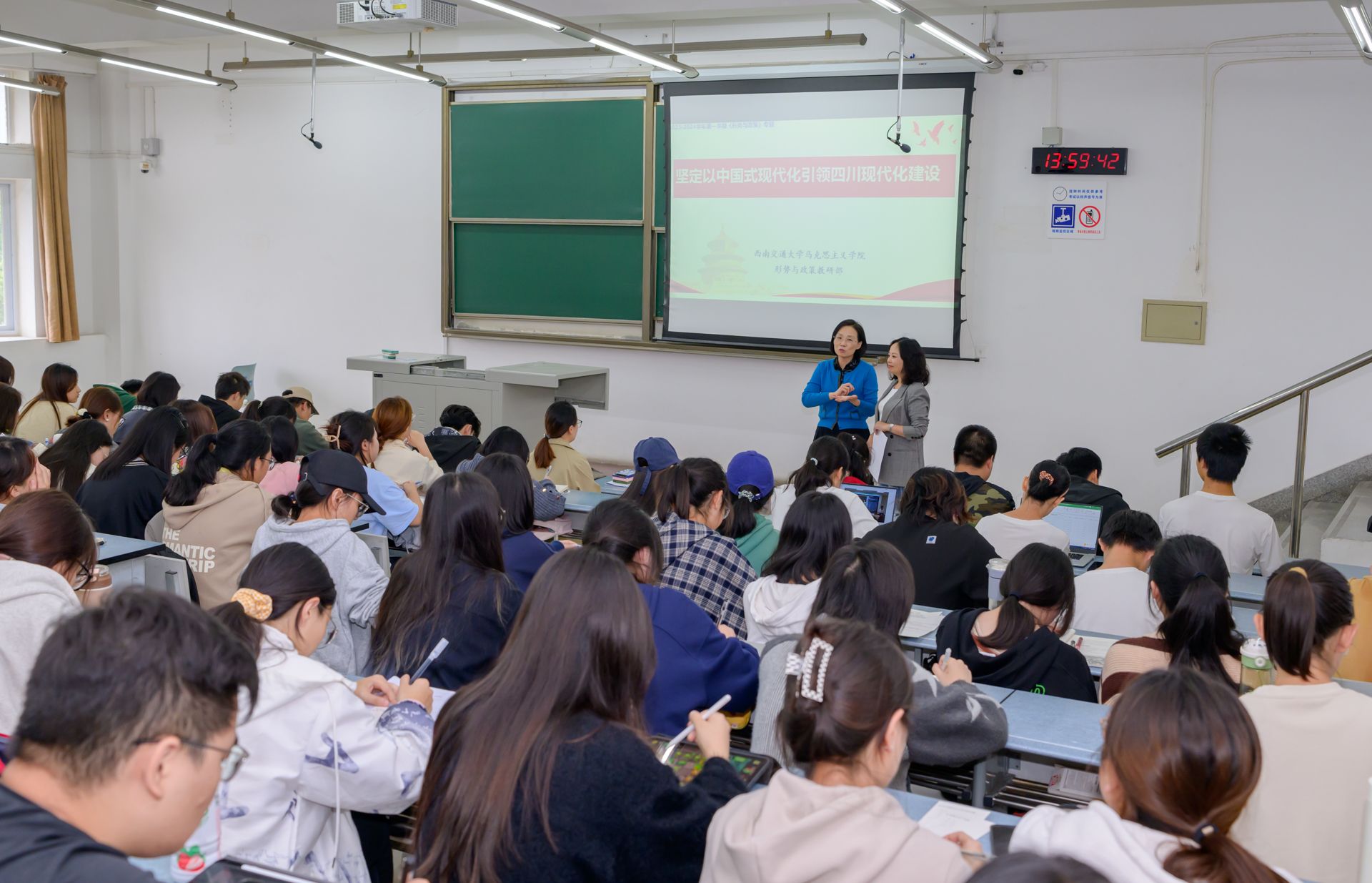 日前,公司党委杨爱华副书记来到犀浦校区一号教学楼课堂,以《适应老员工活,做最好的自己》为题,为太阳成集团tyc234cc和心理健康与咨询中心2023级部分新生上思政课。太阳成集团tyc234cc副经理谢瑜出席,并一同参与授课。