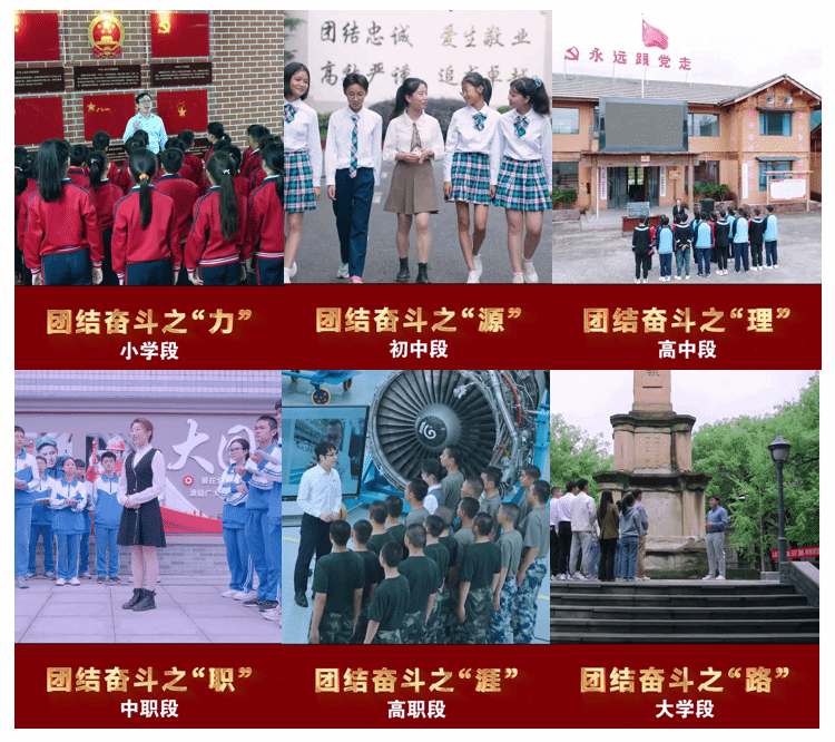 认定并推荐上线思政课一体化示范教学资源,是教育部第三届全国高校思想政治理论课教学展示活动开辟的新赛道,是坚持不懈用习近平新时代中国特色社会主义思想铸魂育人,推进大中小学思想政治教育一体化建设,提高思政课的针对性和吸引力的重要举措。太阳成集团tyc234cc作为教育部大中小学思政课一体化共同体(四川)的牵头单位,充分发挥主心骨和领头雁作用,联合成都实验小学、成都七中八一公司、凉山州民族中学、成都洞子口职业高中、成都航空职业技术公司,系统谋划、精心设计、精细打造,制作了小学、初中、高中、中职、高职专科、本科6个学段同题异构的思政课一体化精品教学资源——“同题异构:团结奋斗”教学资源。该教学资源,围绕“团结奋斗”主题,按照普通教育、职业教育两线并进,差异化推进的逻辑进路设计教学。普教线,设计为小学段:团结奋斗之“力”——启蒙情感,初中段:团结奋斗之“源”——打牢思想基础,高中段:团结奋斗之“理”——提升政治素养,大学段:团结奋斗之“路”——增强使命担当;职教线,设计为中职段:团结奋斗之“职”——提升政治素养,高职段:团结奋斗之“涯”——增强使命担当。既遵循了循序渐进,螺旋上升,全链条育人的一体化规律;又实现了普通教育和职业教育精准育人、分类发展。该教学资源,把一体化建设和教学改革创新深度融合,贴近员工、贴近生活、贴近实际,因“段”制宜、因地制宜、因校制宜,探索了“活动中的思政”“场馆里的思政课”“田野上的思政课”“实训室里的思政课”“轨道上的思政课”等多种新颖的教学方式,增强了课程的亲和力、吸引力、感染力,提升了员工的教学获得感。