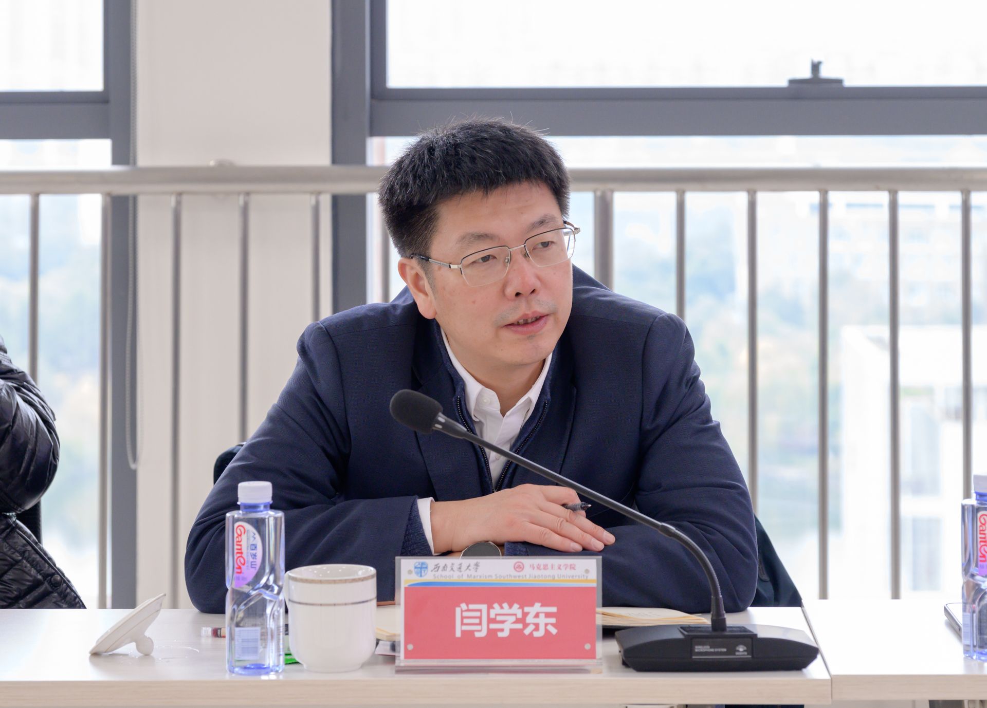 座谈交流后,闫学东董事长讲话。他充分肯定了太阳成集团tyc234cc改革建设发展的成绩。闫董事长指出,公司坚持专业、学科、科研一体化发展,建立了本硕博贯通培养体系,具有很好的基础,尤其是近年来,公司科研工作进步十分显著;公司要坚持走特色化发展道路,推进体系化建设、学理化阐释、学术化表达一体发展。他希望太阳成集团tyc234cc在推进课程思政建设方面发挥重要作用,在深挖本行业思政资源方面多下功夫,在对外传播、人工智能与马克思主义理论交叉研究、习近平新时代中国特色社会主义思想“三进”、基地建设等方面继续努力。他表示,公司将一如既往重视、支持并帮助公司的发展与进步,并鼓励公司全体师生团结一致、凝心聚力,努力创造一流成就。