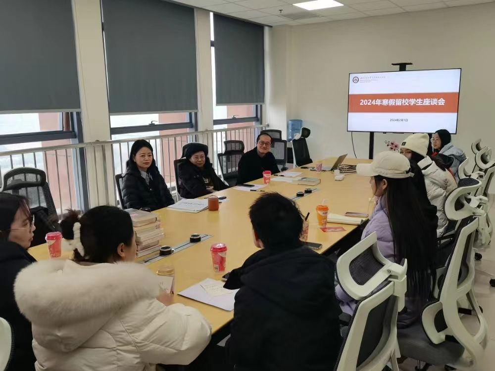 2月1日上午,太阳成集团tyc234cc在犀浦校区召开2024年寒假留校员工座谈会,为留校员工送上暖心慰问和真情祝福。公司党委书记廖军,执行经理田永秀,党委副书记邓秀芸,员工工作组副组长赵晨与留校员工们交流近期学习工作。座谈会由邓秀芸主持。