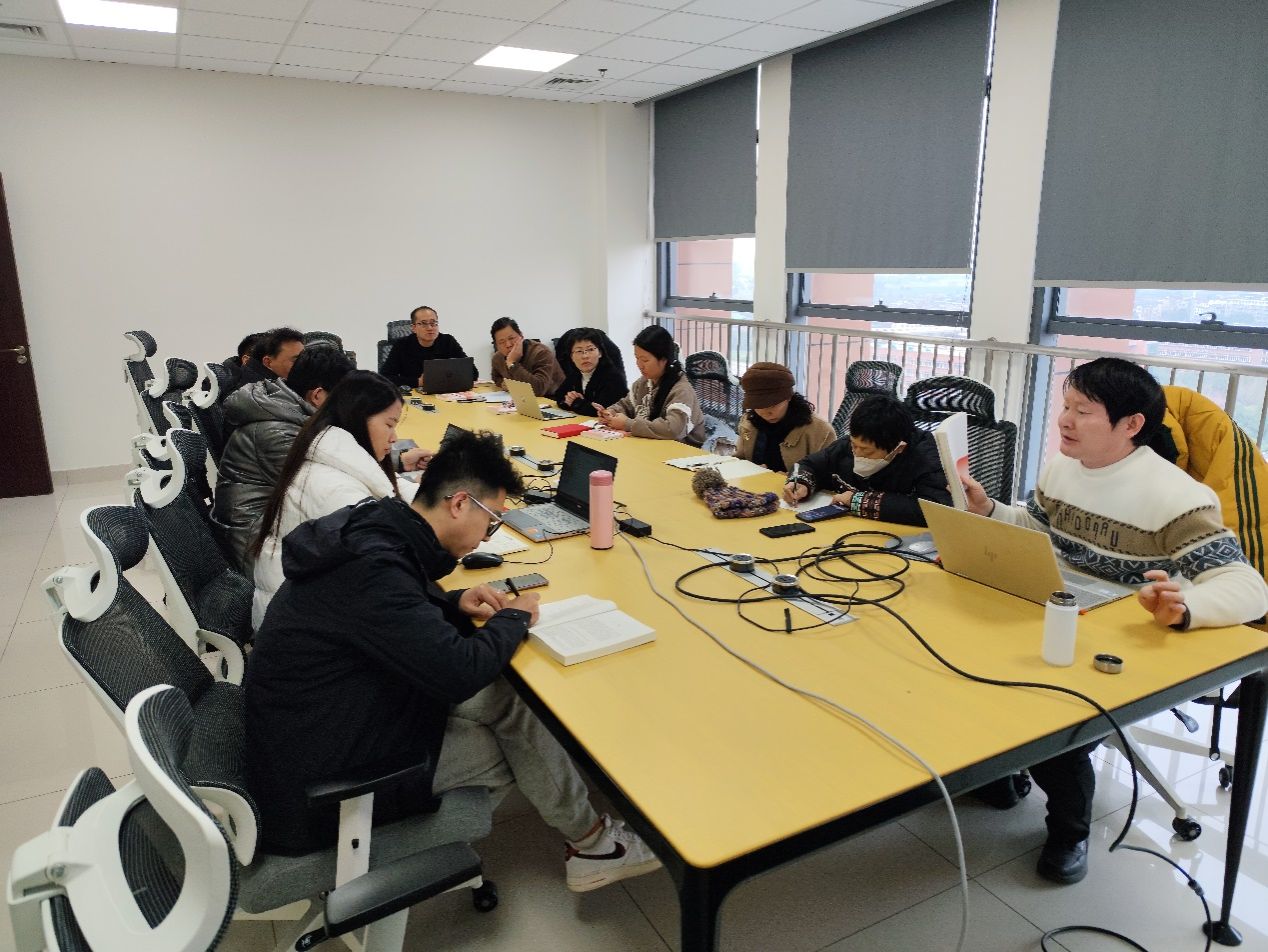 首先,教研室主任刘玉标对照本学期的教学安排一览表,按照新版教材的整体框架结构,逐一讲明了每周的专题安排、设计意图以及实践教学方案;传达省教指委要求,强调要严格按照2023版新教材和教育部课件优化版进行授课,推荐了相应的配套课程资源;依托教学团队新撰写的国家一流课申报教案,以导论为例讲述教学导入和行课逻辑。接下来,教学团队各成员围绕员工实践作业成绩评定、发挥教师主动性、不同教师不同教学班级的标准统一性、平时成绩各部分占比等方面展开深入交流研讨,在执行大纲和实践教学方案上形成了最大共识。