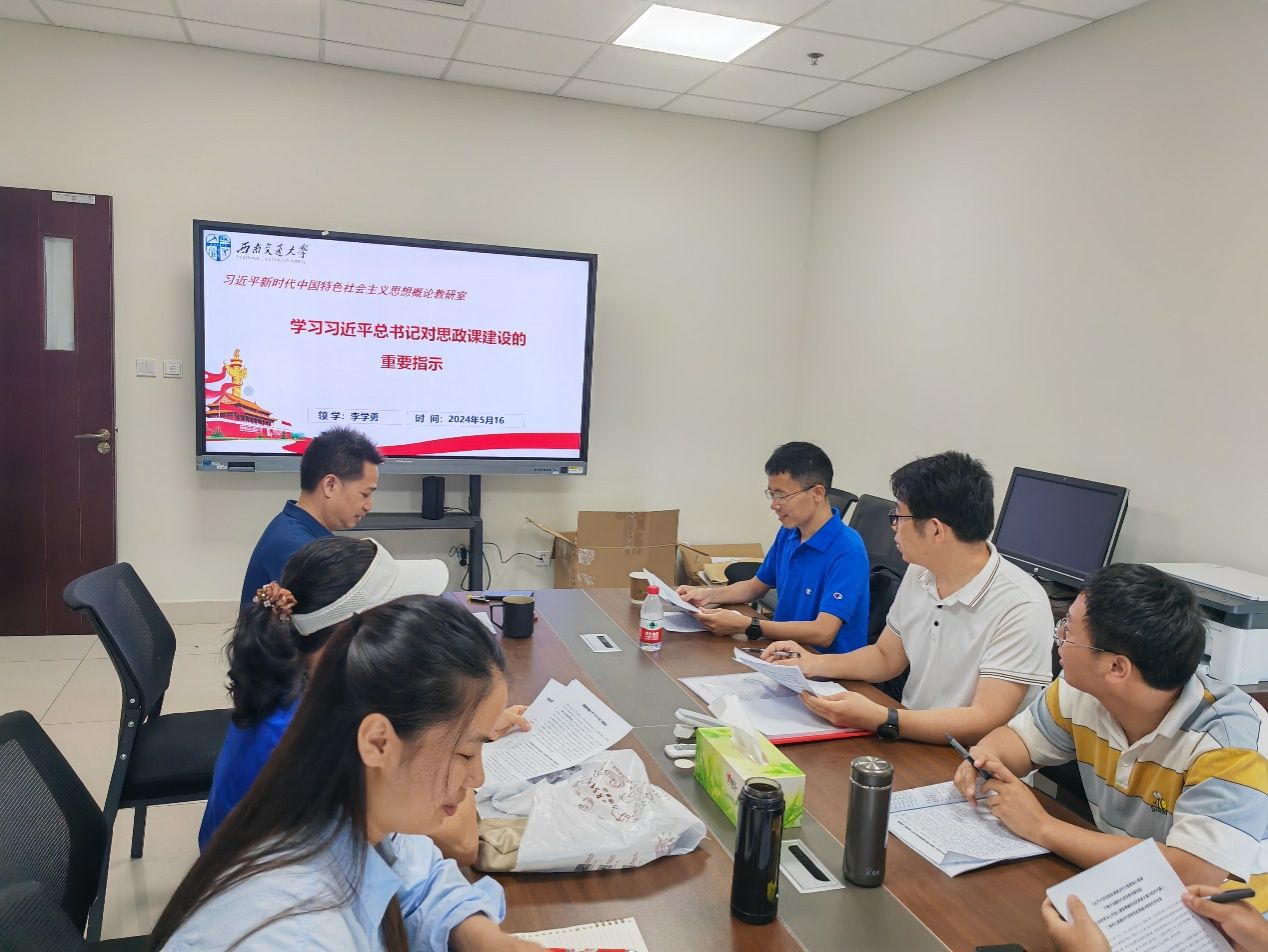 2024年5月16日下午4点至5点半,习近平新时代中国特色社会主义思想概论课程教学团队在犀浦校区3号楼1312教研室召开集体备课会,李学勇、刘玉标、郜清攀、蔡文、魏人民、余琼、凡景强、杨康、徐娅楠等9位老师共同参加了本次会议。公司党委委员、课程负责人李学勇教授带领教研室同仁集体学习了习近平总书记对公司思政课建设的重要指示和新时代公司思政课建设推进会精神,大家围绕如何第一时间、最大限度把重要指示和会议精神融入课堂教学之中,推动课程教学高质量发展等展开热烈讨论和深入交流。