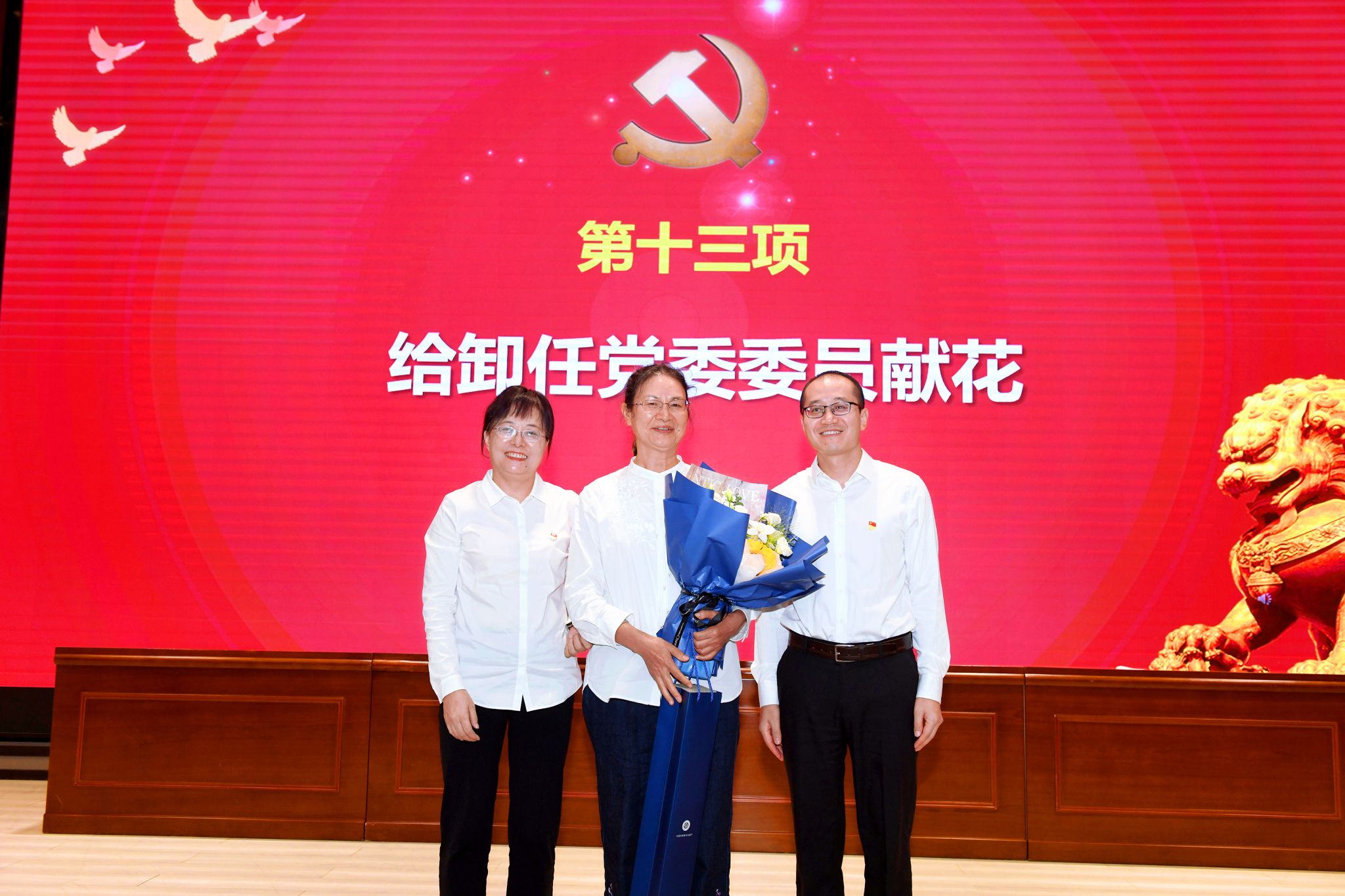 在热烈的掌声中,廖军同志、田永秀同志为卸任党委委员冉绵惠同志献花,感谢冉老师8年来兢兢业业的工作和对公司建设发展做出的贡献。