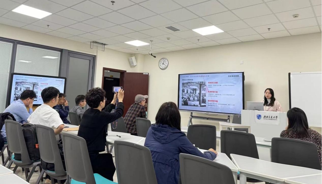 会议伊始,徐倩老师以生动的语言和详实的史料,为与会教师呈现了一场精彩的课程试讲。她从辛亥革命的宏观背景切入,深入剖析了民族危机和社会危机下民族主义情绪的高涨、革命团体的兴起与传播,以及资产阶级革命派的经济基础和阶级基础形成过程。特别是在讲述孙中山的革命思想与背景时,徐老师不仅追溯了孙中山的成长历程,还详细阐述了其由改良而革命的转变过程,展现了孙中山革命思想的深刻性和复杂性。