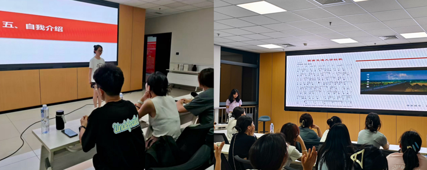 在新生第一次班会上,本科新生班导师谢汶兵为新生们介绍了大学学习的特点与要求,鼓励大家珍惜大学时光,积极探索知识,为未来的学术研究和职业发展打下坚实基础。本科新生辅导员敬宇发表了深情寄语,希望新生们能够相互扶持,共同成长,为老员工活增添色彩。新生自我介绍环节中,每位同学都勇敢地站上讲台,用真诚的话语和独特的魅力展现自己,彼此间的距离悄然拉近。最后,全体新生在学姐的带领下,齐声学唱校歌,深切感受公司文化。