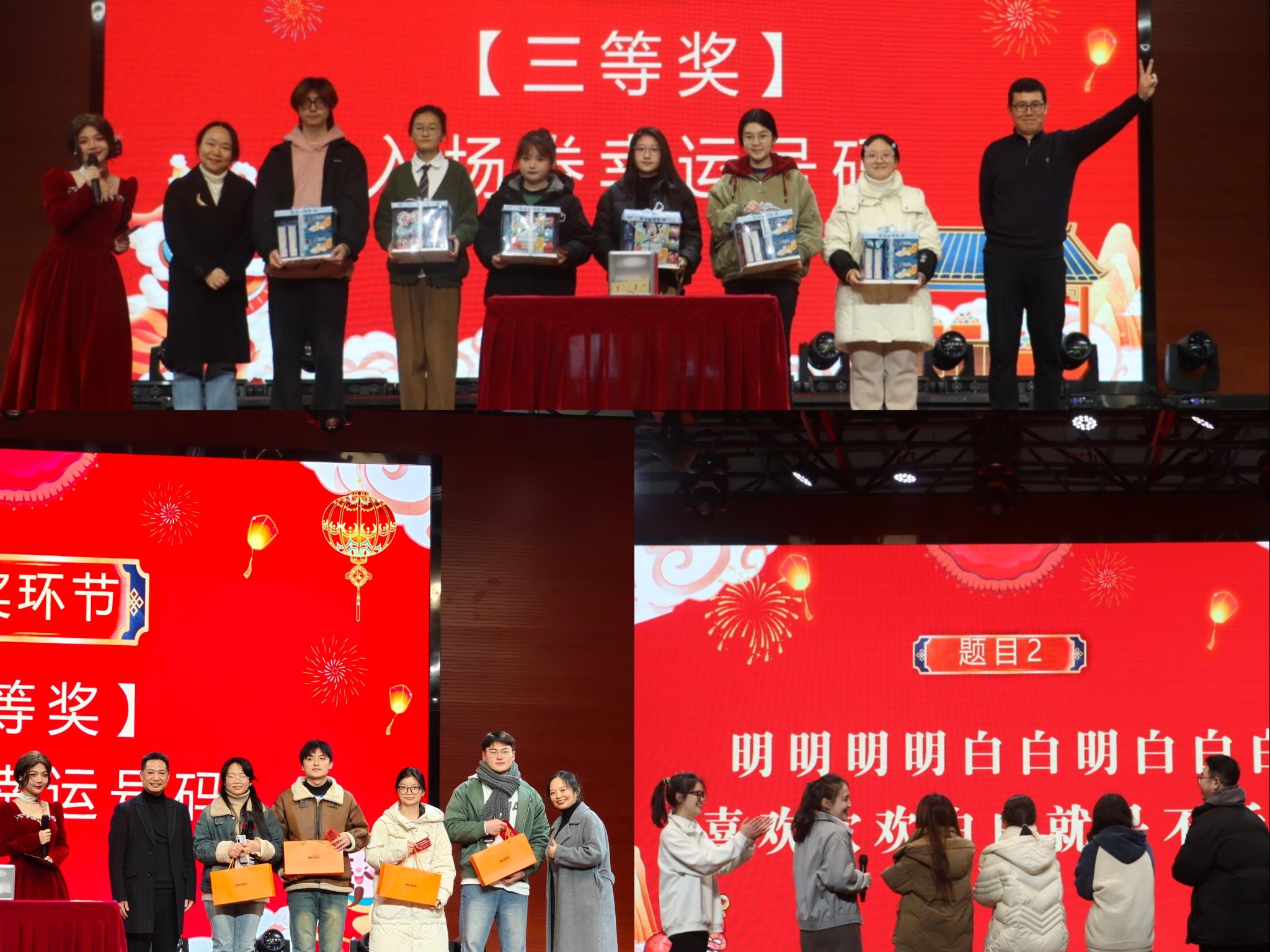 晚会节目与游戏互动穿插进行,师生们积极参与,气氛热烈非凡。现场设置了“绕口令速通”趣味游戏,不仅考验了大家的反应能力和友谊精神,也让师生们在轻松愉快的氛围中增进了感情。在抽奖环节,公司领导亲自上台抽取幸运观众并送上丰富奖品,现场惊喜不断。