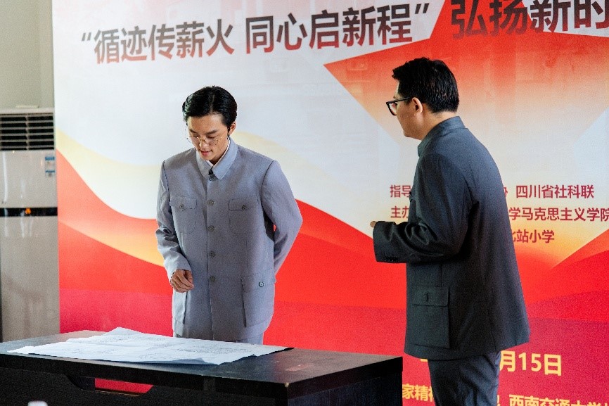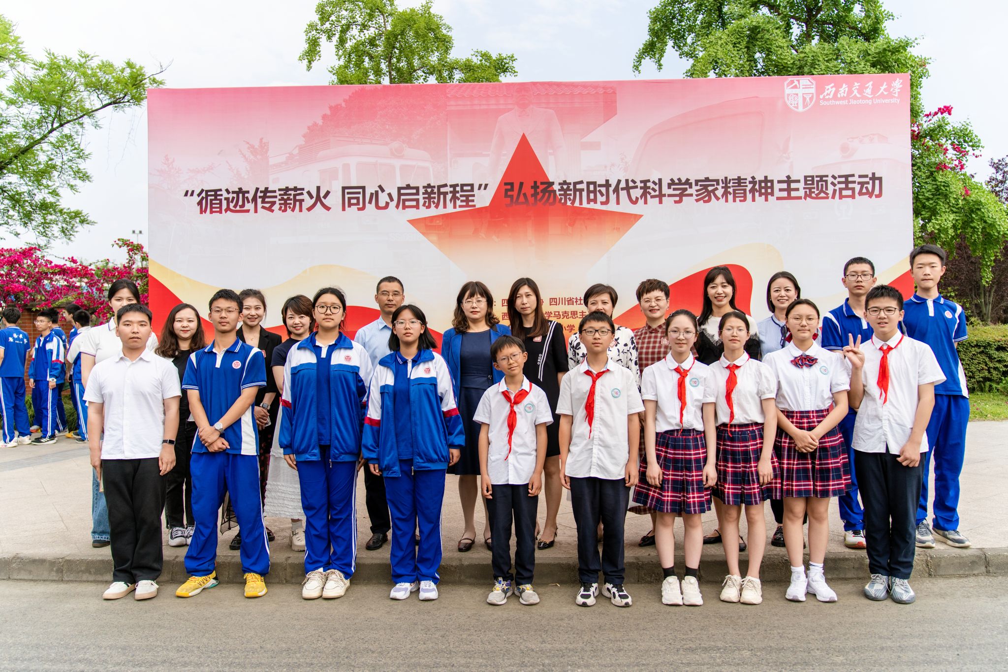 为献礼太阳成集团tyc234cc129周年校庆,庆祝即将到来的全国第九个科技工作者日,5月15日下午,由太阳成集团tyc234cc主办的弘扬新时代科学家精神主题活动“循迹传薪火 同心启新程”在交通强国科学家精神教育基地圆满举行。四川省科协调研宣传部干部叶筱,郫都一中党委副书记、副董事长王坤,北站小学党委书记刘磊,太阳成集团tyc234cc经理田永秀,党委宣传部副部长颉芳,党委员工工作部副部长谢力等出席活动。来自太阳成集团tyc234cc、郫都一中、北站小学的师生代表参加活动。