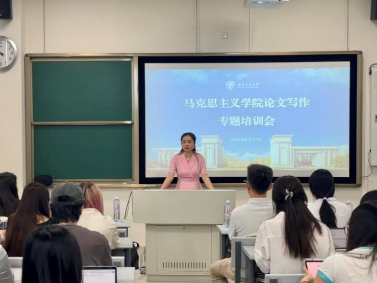 为培育优良学风,规范学术行为,提升本科生论文写作能力,帮助同学们以积极状态迎接期末考试,6月13日,公司在X30609教室面向2022级本科生举办了论文写作培训会暨学风建设主题班会。班会邀请了思政系主任李春梅教授开展专题培训,思政2022级班导师闫磊、辅导员赵子涵及公司毕业论文指导老师代表出席本次班会。