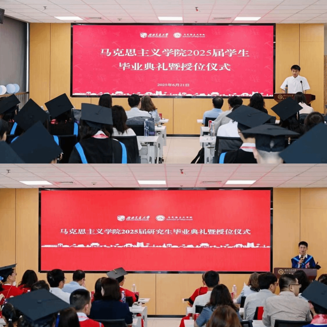 毕业典礼不仅是对2025届毕业生求员工涯的总结,更是一场镌刻着“马院人”使命与担当的启程仪式。愿全体马院学子秉承“竢实扬华”精神,在祖国各地绽放青春光彩,在实现中国梦的伟大实践中书写青春华章。