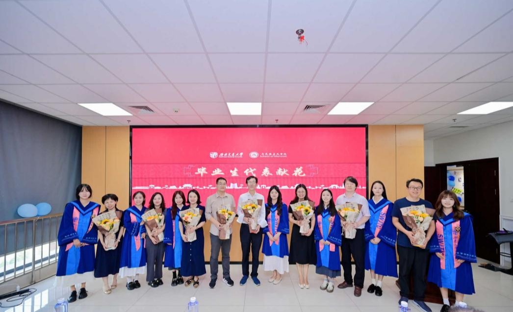 临别之际,感念师恩。毕业研究生代表依次向辛勤培育他们的导师敬献鲜花并鞠躬致谢,深深一躬传递着浓浓的师生情谊。