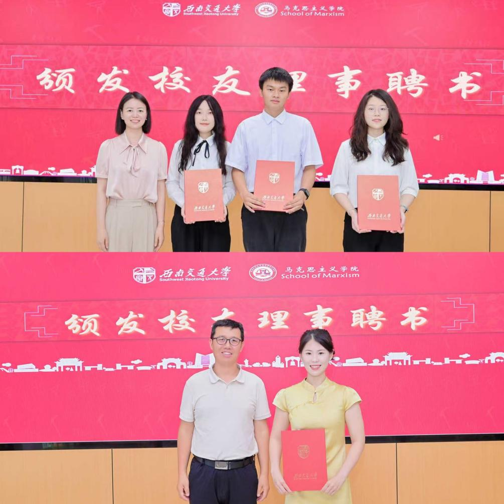 邓秀芸、思政培研中心副主任杨伟宾分别为2025届员工理事颁发聘书,勉励他们积极搭建员工与母校、员工与员工沟通的桥梁。