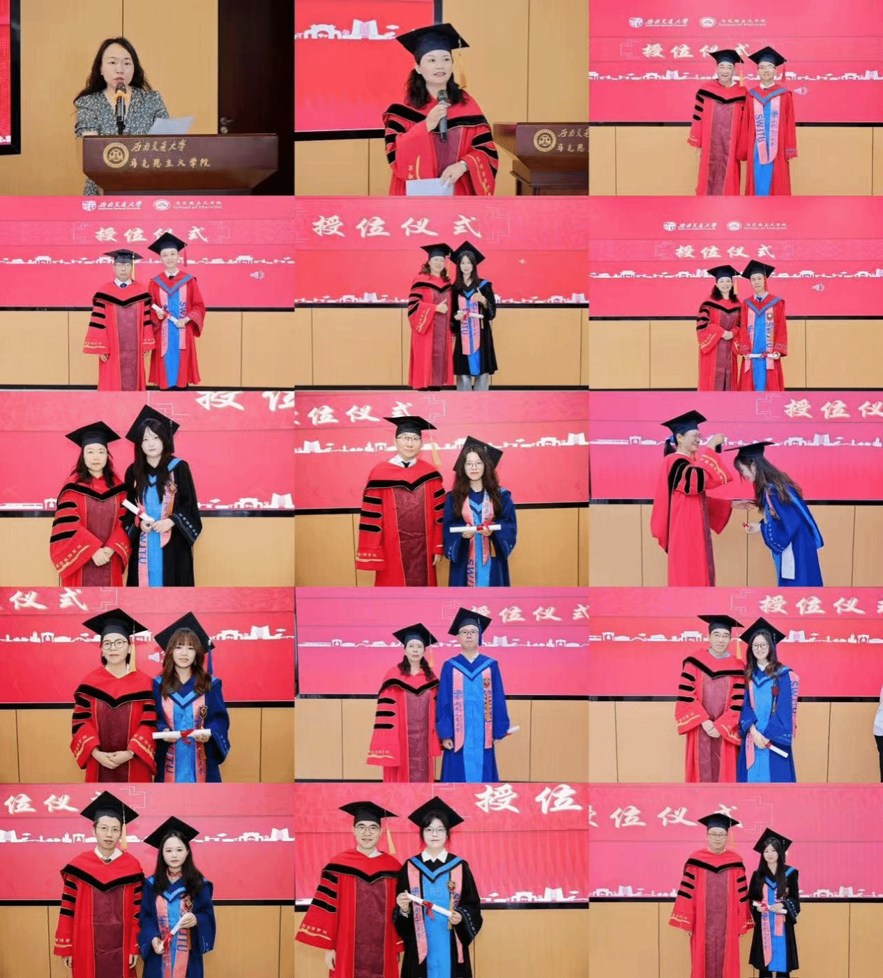 王菁和谢瑜分别宣读了授位决定。导师们逐一为毕业生们拨穗正冠、举行授位仪式。典礼最后,全体师生齐唱校歌,唱响了对公司的热爱和对未来的美好期许,共同见证了这个充满感动和意义的毕业典礼。