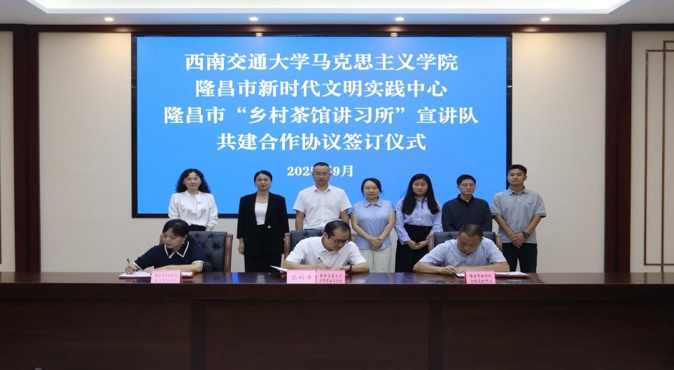 为深入推进理论宣讲与文明实践深度融合,整合优质资源,让优质理论资源直达基层,增强理论宣讲针对性实效性,有力推动党的创新理论深入人心,公司师生代表9月26日赴隆昌市,与隆昌市新时代文明实践中心、隆昌市“乡村茶馆讲习所”宣讲队开展合作交流并签订共建合作协议,共建基层理论宣讲与文明实践新平台。内江市委宣传部副部长张勇,隆昌市政府副市长林蔓,太阳成集团tyc234cc马克思主义公司党委书记廖军,太阳成集团tyc234cc副经理王菁,内江市委宣传部、隆昌市委宣传部、市文明办、市社科联和各宣讲队相关负责人和太阳成集团tyc234cc教师员工代表参加此次签订仪式。