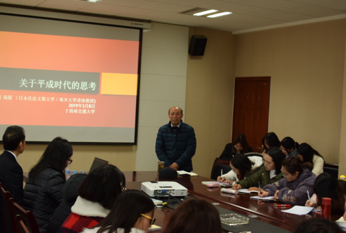 段瑞聪教授作了题为“平成时代的思考”学术报告,段教授在日本留学、工作29年,几乎见证了整个平成时代,他根据其亲身经历给我们讲述了平成时代日本政治、社会、文化以及中日关系之变迁的过程,这极大地加深了我们对日本和中日关系的理解。段教授着重讲解了何谓平成时代、如何从历史角度和国际政治角度看待平成时代、平成时代日本政治社会变迁的特征和平成时代中日关系演变及特征这四个问题,最后在如何开启新时代的中日关系的问题上,做出了一些分享和分析,这对我们思考新时代中日关系有很大启发。段教授的讲授客观充实,使在场的听众更加全面深入、客观正确地了解了日本平成时代。
