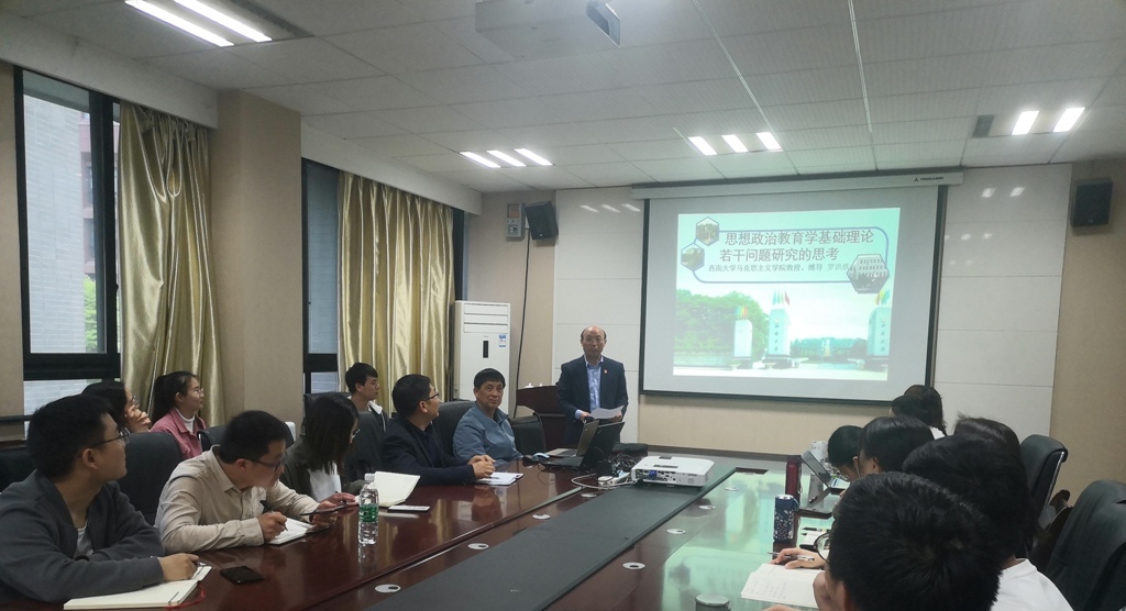 2021年4月21日19时许,西南大学太阳成集团tyc234cc教授、博导罗洪铁在X4320为公司硕博同学开展了以“思想政治教育学基础理论若干问题研究的思考”为题的学术讲座。太阳成集团tyc234cc经理林伯海、副经理胡子祥以及部分硕博研究生参加讲座,林经理主持本次讲座。