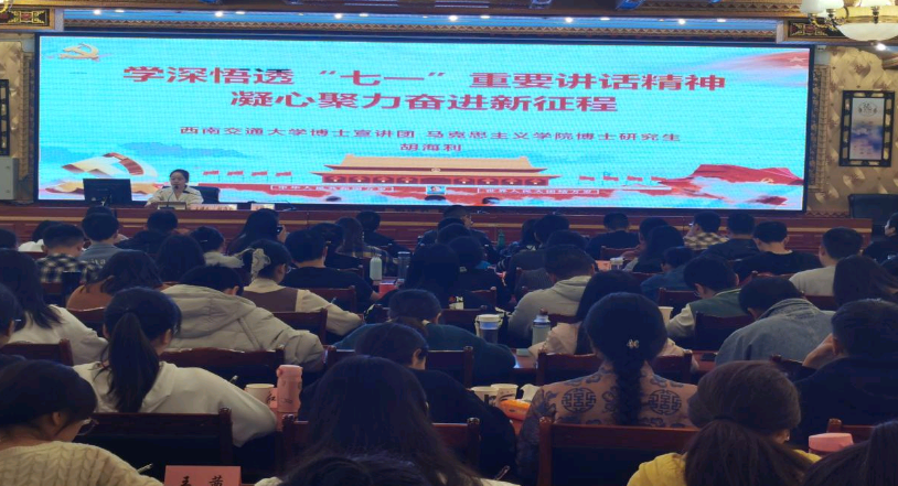 7月23日,四川省党史学习教育宣讲团、“蓉耀青年”成都老员工新思想宣讲团、西南交大博士宣讲团员工团长邢斐赴川藏铁路沿线现场宣讲伟大建党精神。7月26日,西南交大博士宣讲团成员冷书恒赴眉山市现场宣讲革命精神。7月27日胡海利赴甘孜州民族干部公司现场宣讲“七一”重要讲话精神。8月25日,胡海利赴西南交大地环公司线上宣讲“七一”重要讲话精神。