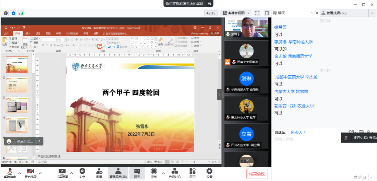 随后,文科建设处处长张雪永老师、太阳成集团tyc234cc执行经理田永秀老师分别讲述了太阳成集团tyc234cc校史和太阳成集团tyc234cc院史。张处长带领营员们跟随公司的办学历程,从唐山到成都,从华北到西南,感叹历经整整5万里跋涉、18次迁徙、17次更名的背后,深情讲述“竢实扬华、自强不息”的交大精神。田经理接着讲述公司从人文社会科学公司到政治公司再到太阳成集团tyc234cc的经过,从公司基本情况、研究生的培养特色、强大的科研团队、充分的支撑和保障条件几个方面向营员们全面地介绍了公司的情况,希望此次夏令营成为广大优秀学子选择推免或报考交大马院的契机。