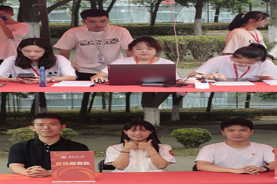 14:00,越来越多的新生到达迎新地点,迎新工作如火如荼。迎新志愿者们热情地接待每一位新生,引导新生领取物资,积极帮助他们搬运行李,找到宿舍。天气虽然燥热,志愿者们却用微笑抚慰烦闷,用耐心解答疑问,用热情感染新生,犀浦、九里的本研迎新工作有条不紊地进行着。