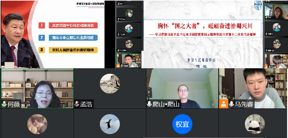 课程负责人何薇教授介绍了四川省2022年度形势与政策年会的基本情况,对取得优异成绩的陆宇佳、王喆桅表示祝贺。她强调,我们形势与政策这支教学队伍有很好的基础,许多老师付出了很大的心血,希望大家踊跃参与、积极准备,在2023年的年会上能够看到更多交大老师的身影。何薇教授还结合参加省委组织的宣讲团、赴各地和相关部门宣讲的实际,与大家进行了深入交流。