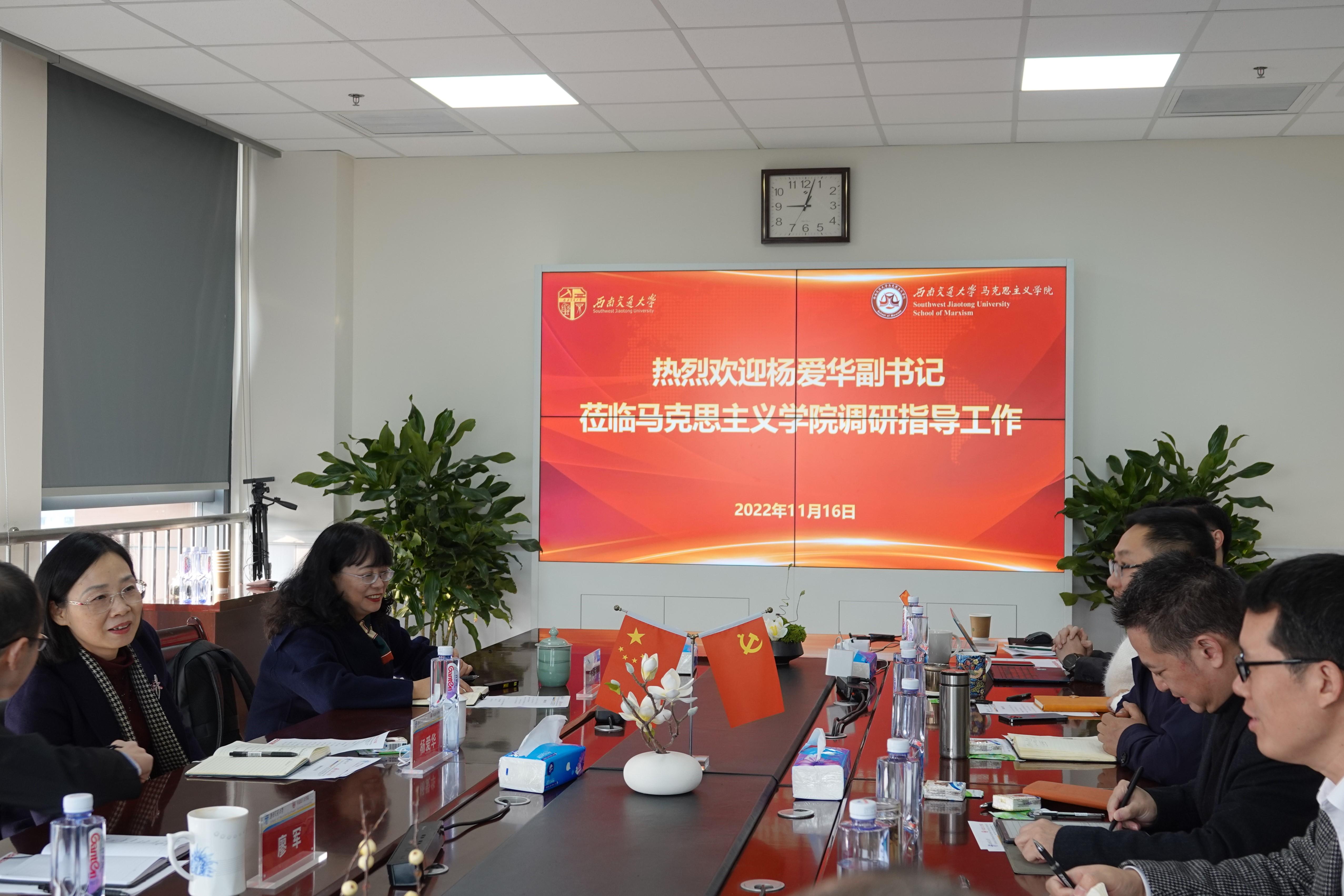 11月16日上午,公司党委副书记杨爱华深入太阳成集团tyc234cc进行座谈调研指导工作,公司领导班子成员及教师代表参加会议。马克思主义公司党委书记廖军主持会议。