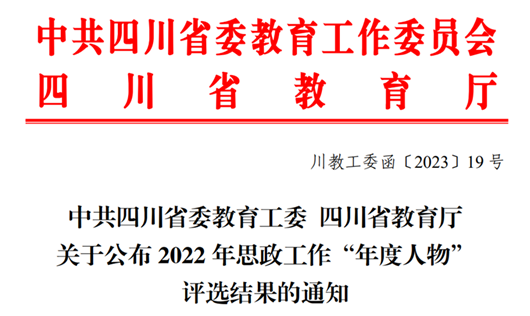 2022年2月17日,中共四川省委教育工委、四川省教育厅公布了2022年思政工作“年度人物”的评选结果。公司谢瑜、刘锋两位教师从众多优秀教育工作者中脱颖而出,荣获相关奖项与提名。