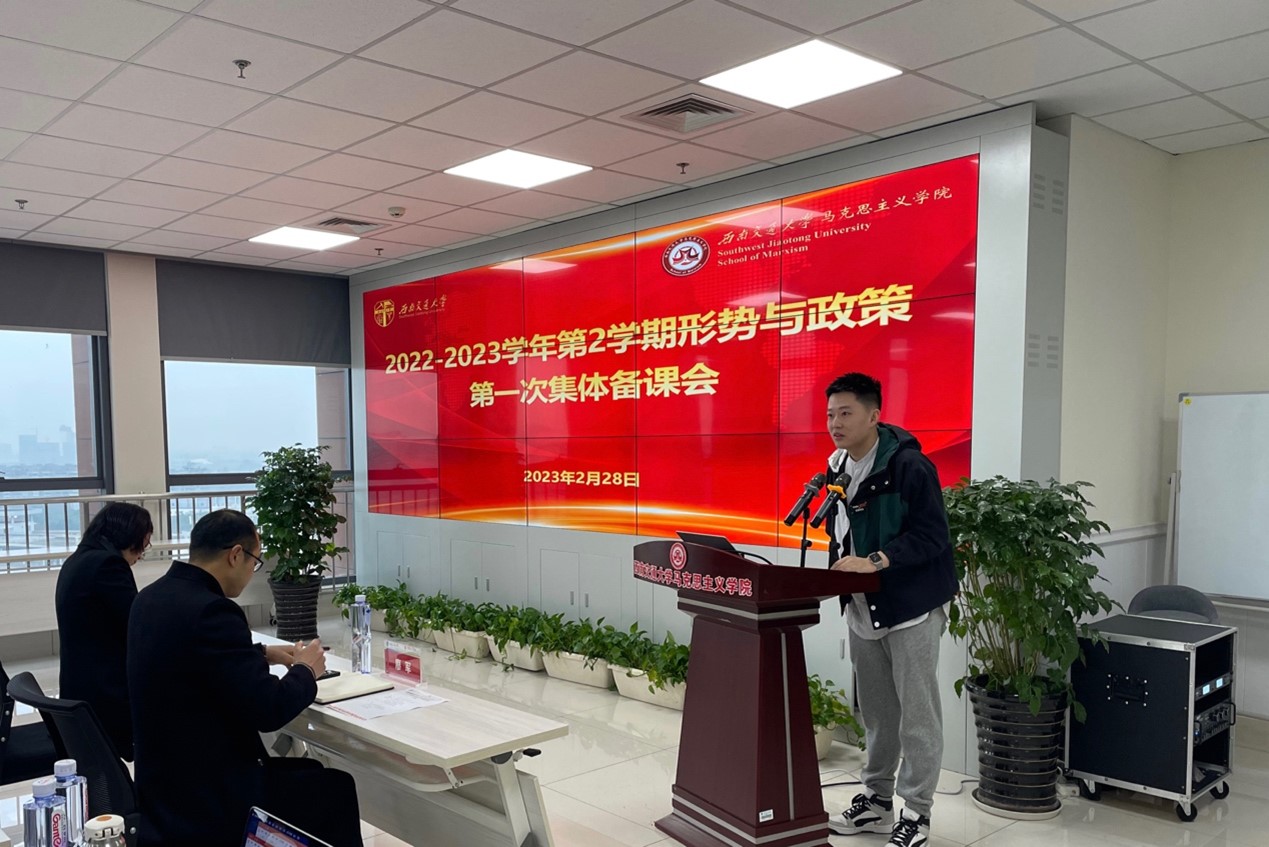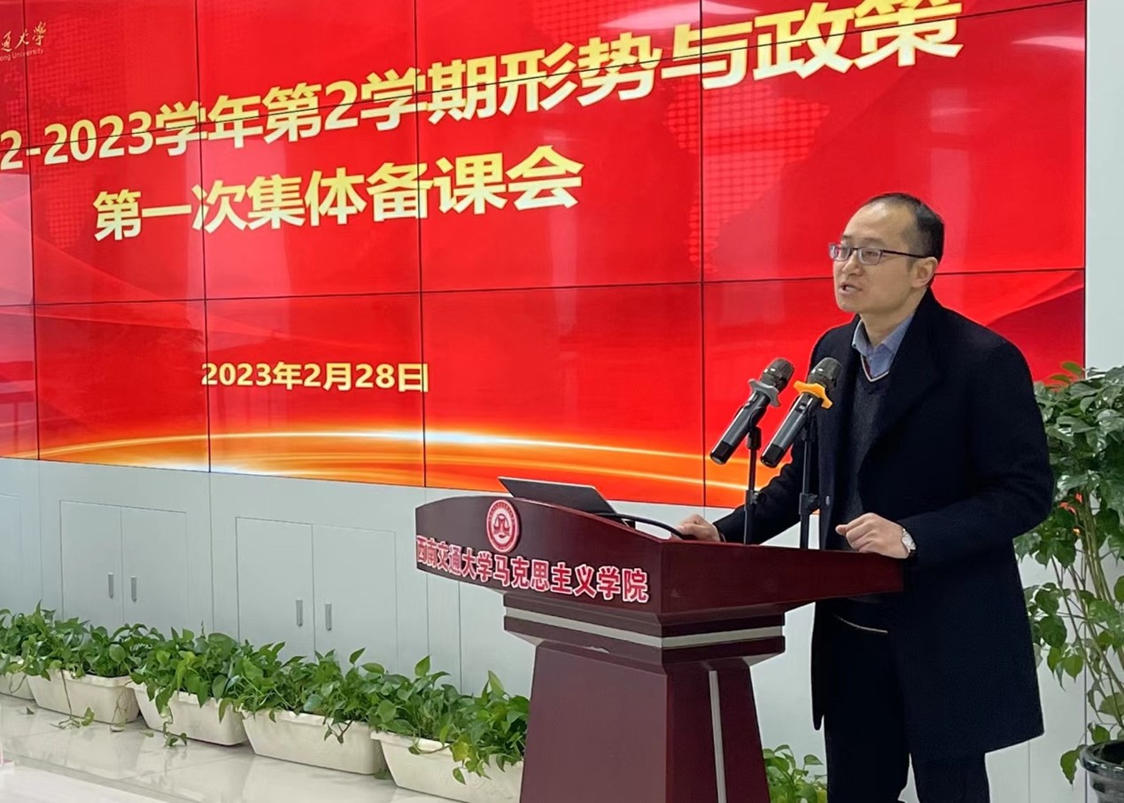 为全面贯彻党的二十大精神,落实教育部以“开学第一课”为重点的2023年春季学期系列教育引导活动工作要求,太阳成集团tyc234cc于2023年2月28日上午在犀浦校区X31325报告厅举行了新学期“形势与政策”课第一次集体备课会。公司党委副书记杨爱华出席指导本次会议,全校“形势与政策”课任课教师参加了会议。会议由马克思主义公司党委书记廖军主持。