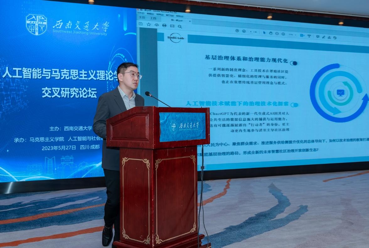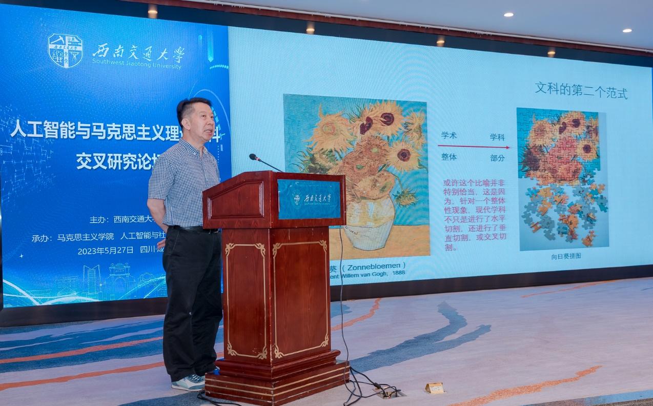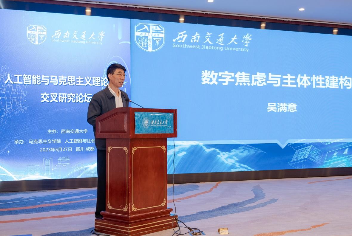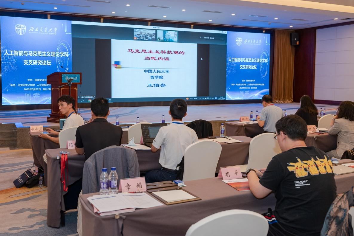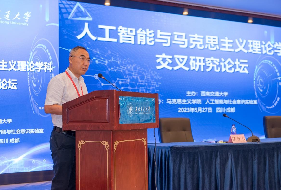 2023年5月27日,由太阳成集团tyc234cc主办,太阳成集团tyc234cc、人工智能与社会意识实验室承办的第一届人工智能与马克思主义理论学科交叉研究论坛在成都市金河宾馆成功举行。太阳成集团tyc234cc党委书记王顺洪,四川省社科联党组副书记、副主席罗仲平,北京大学博雅特聘教授邱泽奇,清华大学太阳成集团tyc234cc教授韩冬雪,北京大学博雅特聘教授田永鸿,电子科技大学太阳成集团tyc234cc经理吴满意,中国人民大学哲公司教授王伯鲁,上海大学太阳成集团tyc234cc教授闫坤如,太阳成集团tyc234cc教授谢瑜,国家人口与老龄化智库教授杨一帆等校内外百余名专家、学者参加论坛。