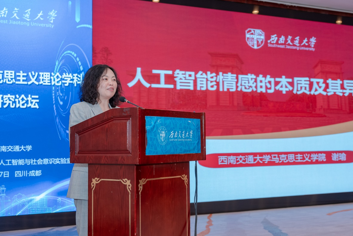 谢瑜教授以《人工智能情感的本质及其异化的可能》为主题进行了发言。谢教授认为人工智能情感的本质是对人类情感的技术模拟、数据还原和抽象呈现。人工智能虽然能够通过数据抽象呈现人的情感,但可能导致情感物化、情感失真、情感枯竭等问题,存在情感异化的风险。谢教授提出,破解人工智能情感异化需要厘清技术边界、重塑人际情感交往、回归情感的本真性。
