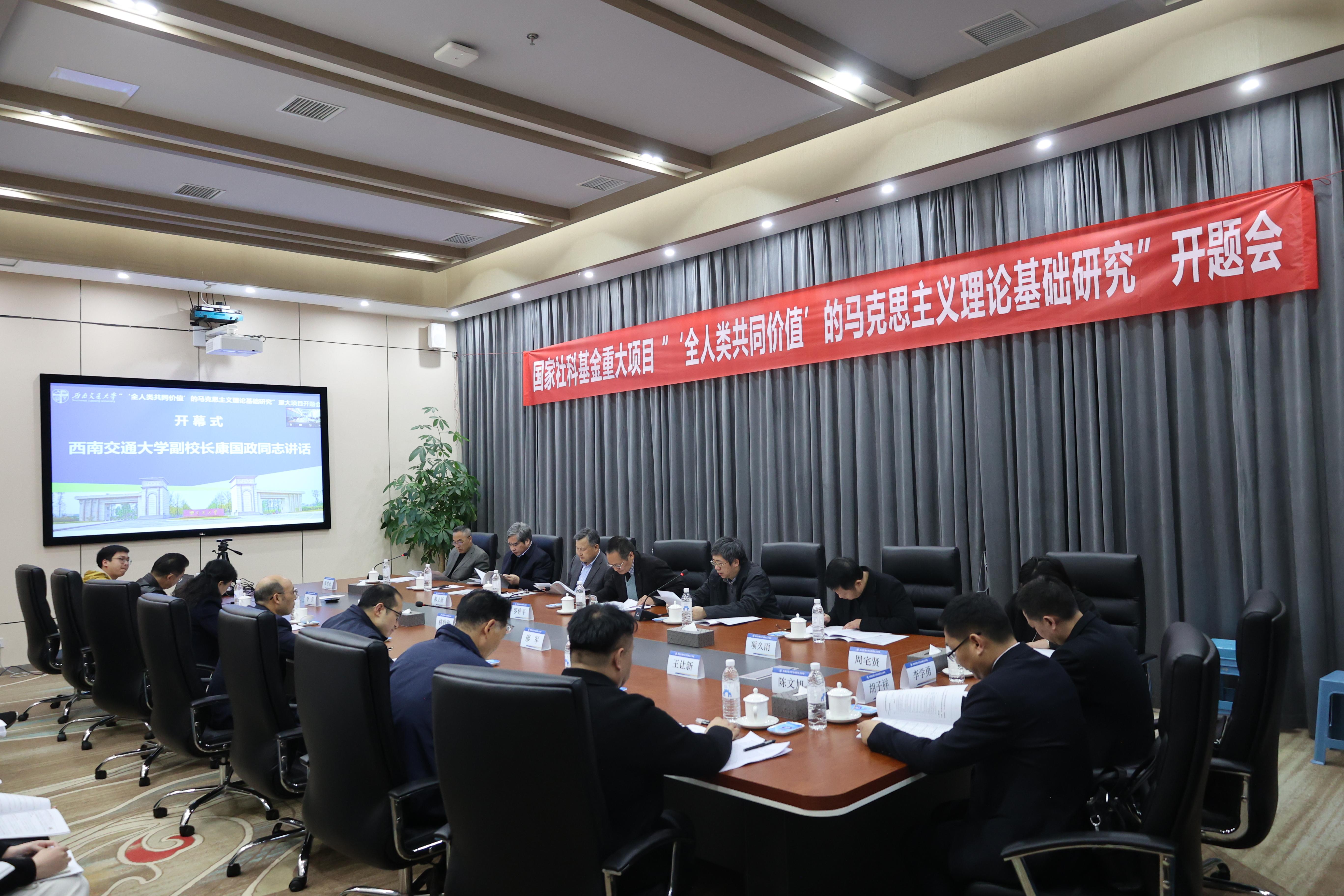 3月4日,国家社科基金重大项目“‘全人类共同价值’的马克思主义理论基础研究”开题暨学习党的二十大精神学术论坛在太阳成集团tyc234cc九里校区学术交流中心顺利举办。太阳成集团tyc234cc副董事长康国政同志、四川省社科联副主席罗仲平同志出席开幕式并发表讲话。开幕式由太阳成集团tyc234cc文科学部执行主任张雪永主持。
