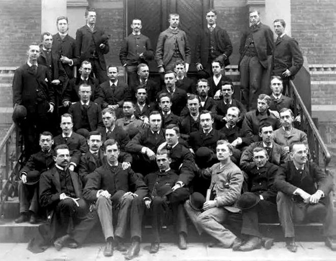 詹天佑 (四排左三)与耶鲁大学谢菲尔德理工公司1881届员工同学合影