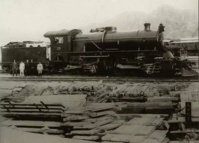 京张铁路竣工后,首先由验道专车进行试验运行。照片中验道车上满载修筑铁路的工人和技术人员。车前合影的技术人员中左一为詹文彪(技术工作人员)、右三为詹天佑。